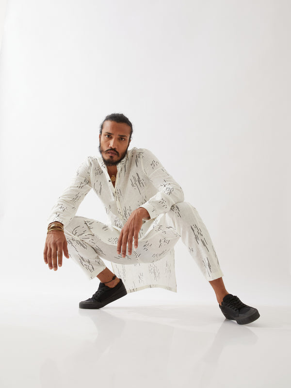 KRISH STENCIL KURTA SET - IVORY