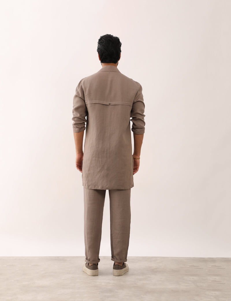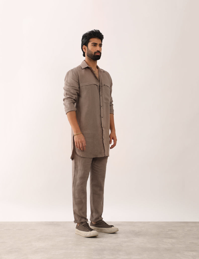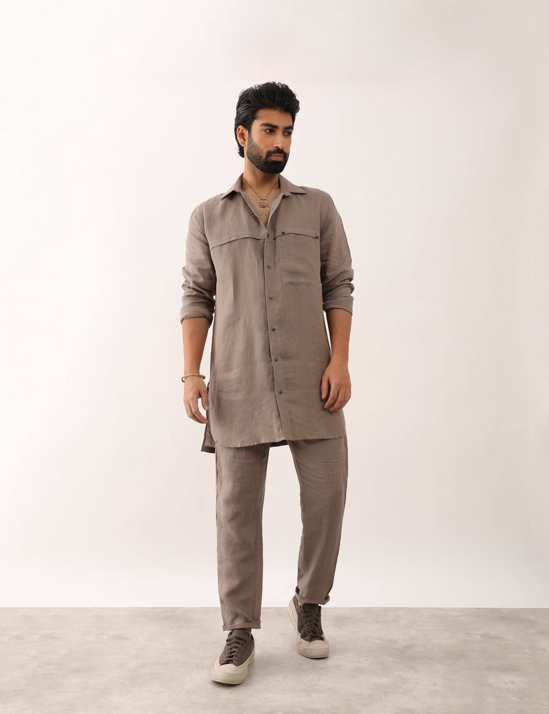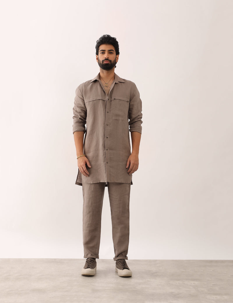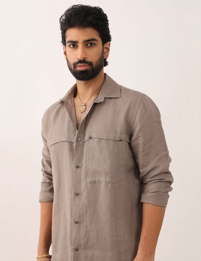 A basic collared shirt with statement bold pockets. Pair it with our classic flat front trouser.