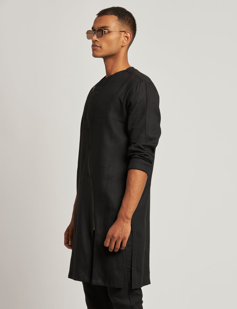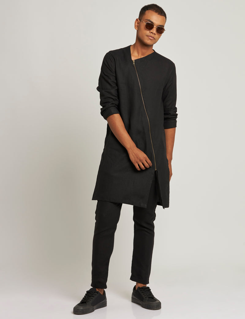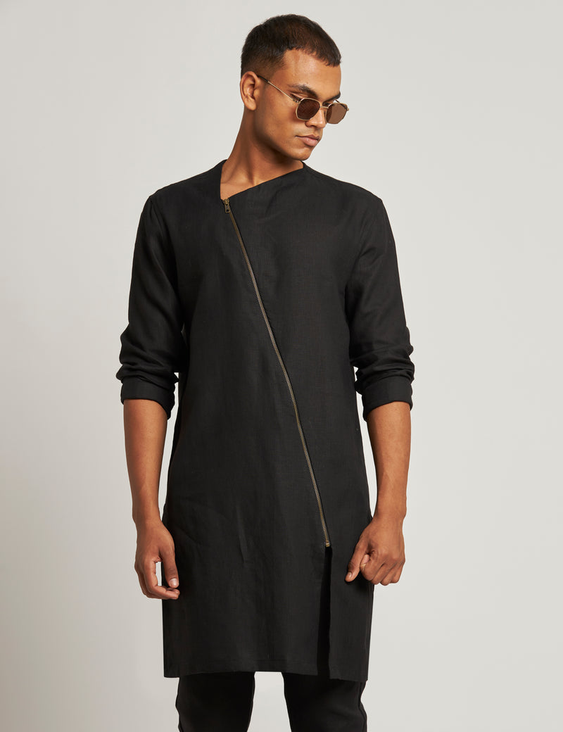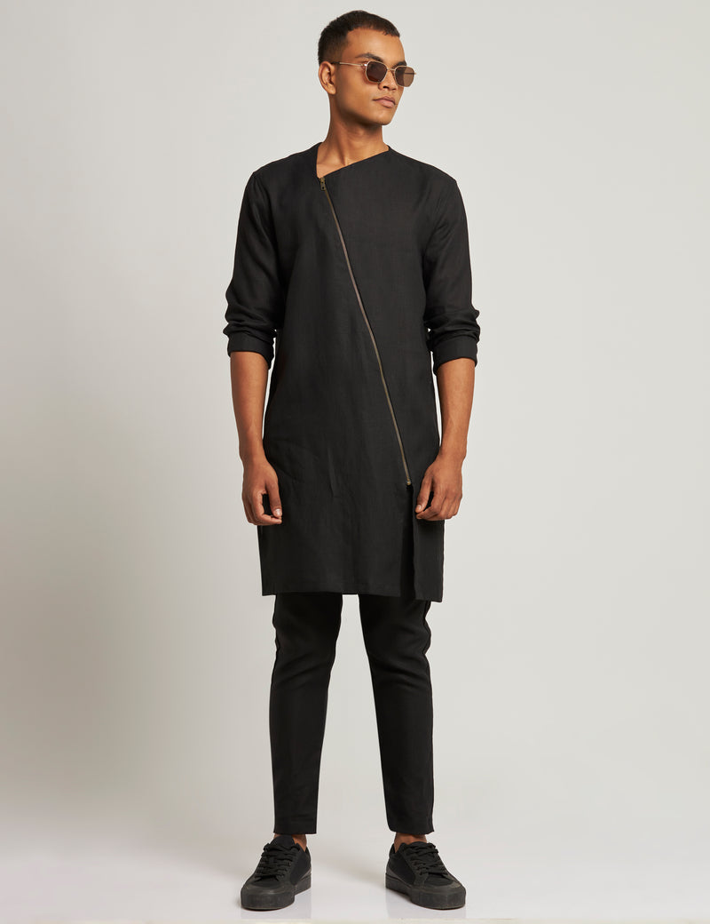 Sleek yet funky kurta with angular zipper detail giving it an edgy look