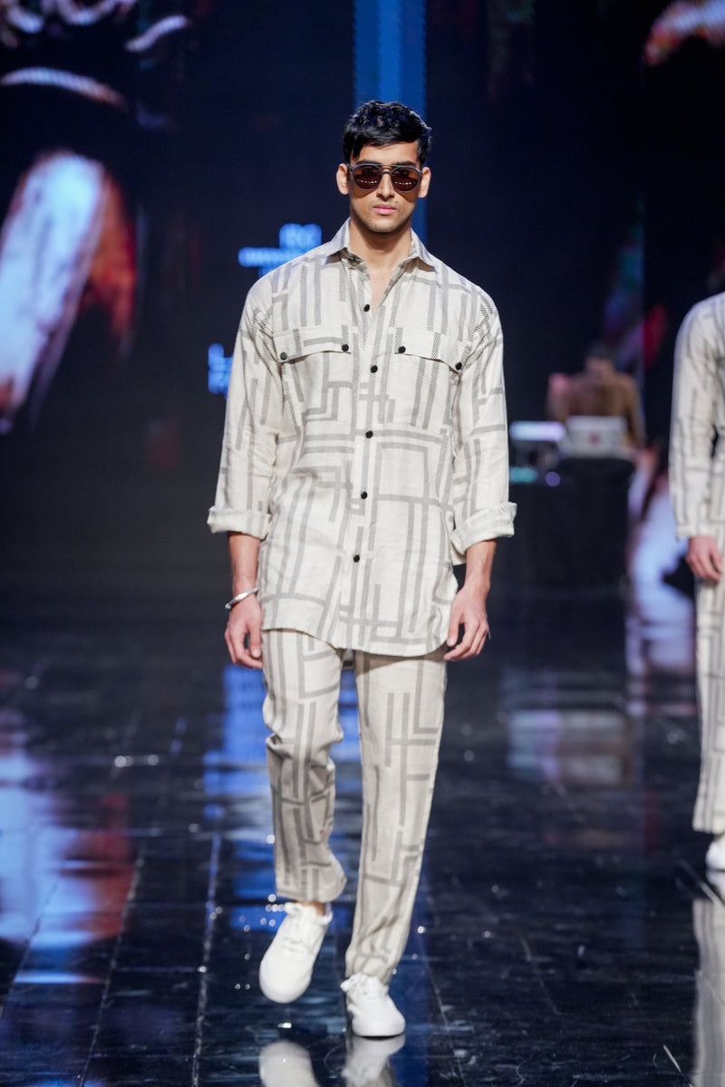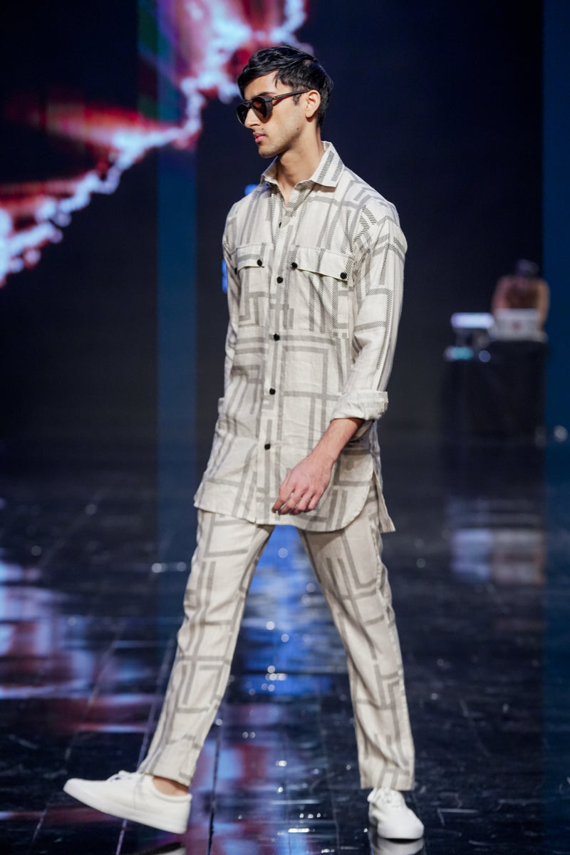 Shop the Ikra co-ord look with our geometric maze print for a stunningly dapper look. Paired with matching flat front trousers.